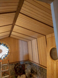 Phần khung dựng với kết cấu vững chãi, định hình kiểu dáng và kích thước công trình, có chức năng giữ nhiệt, bảo vệ quá trình vận hành phòng xông sauna. Phần khung sẽ bao gồm vách phòng, nóc phòng, cửa, băng ghế…